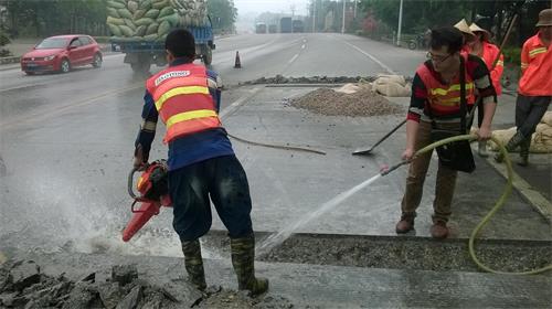 用風(fēng)鎬鑿除劃線范圍內(nèi)的混凝土,鑿除深度一般為板厚的二分之一約12cm(不得低于10cm),鑿除時應(yīng)從劃線內(nèi)區(qū)域向外鑿除,避免出現(xiàn)啃邊現(xiàn)象。如果面板已出現(xiàn)比較嚴(yán)重的錯臺、脫空,建議先打孔壓漿后再進(jìn)行修補(bǔ)。